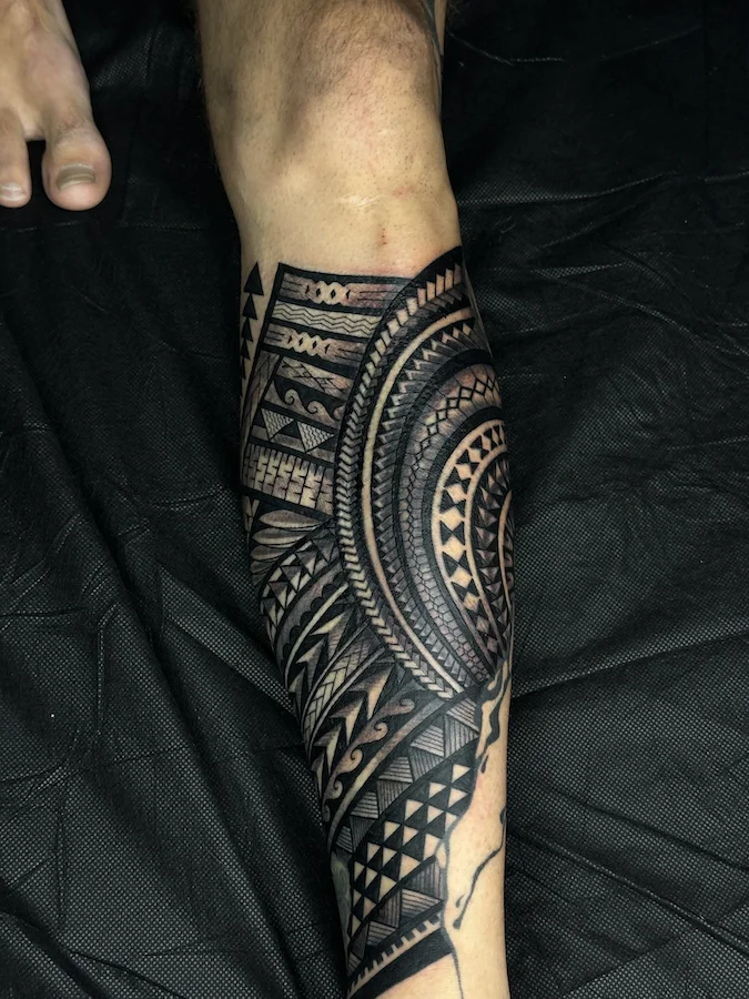 Mit diesem eindrucksvollen Piece zeigte Mana einmal mehr, wie authentische tonga­sche Tattoo-Kunst auf höchstem internationalen Niveau aussehen kann. Besucherinnen und Besucher der Messe waren sich einig: Dieses Unterschenkel-Tattoo war eines der Highlights des Wochenendes.